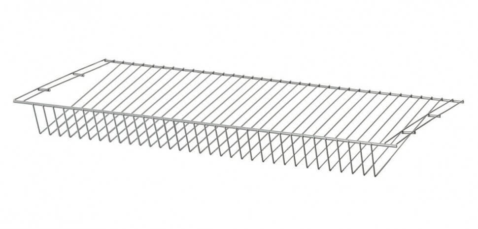 Сетчатая полочка для обуви с небольшим уклоном позволяет аккуратно разместить обувь не занимая при этом много места. Полку можно крепить на любой удобной высоте, а благодаря открытому способу хранения обувь постоянно вентилируется и нужную пару находить гораздо проще.