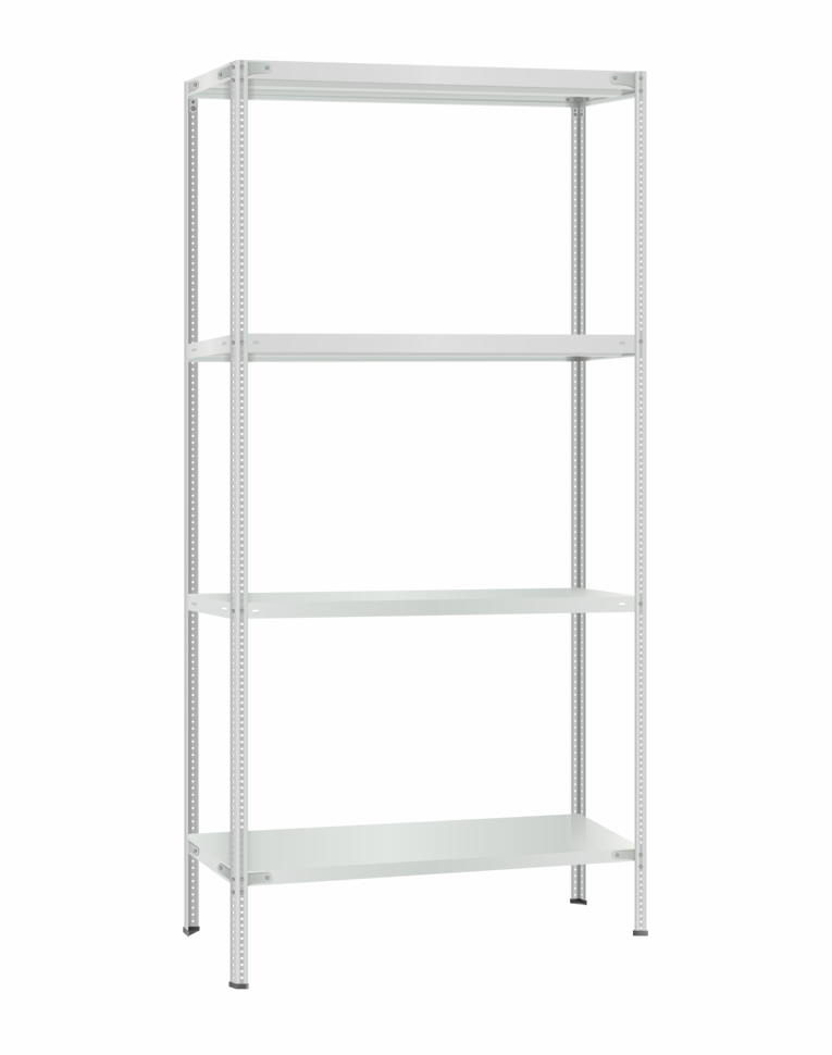Полки МС Титан изготовлены из высокопрочной стали, покрыта полимерным порошковым покрытием светло серого цвета RAL 7035 типа шагрень